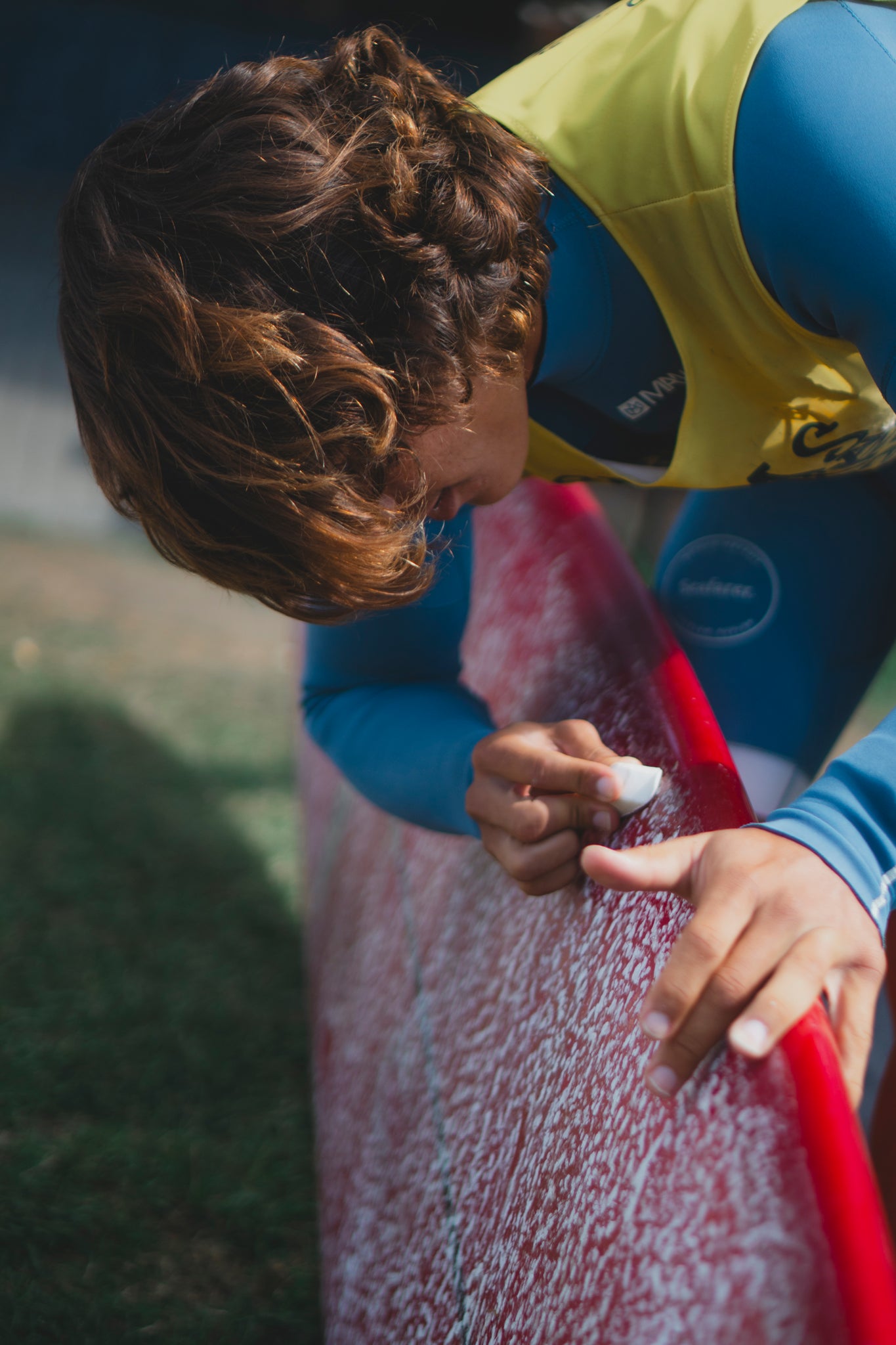 Name, hometown, and surfboard brand.